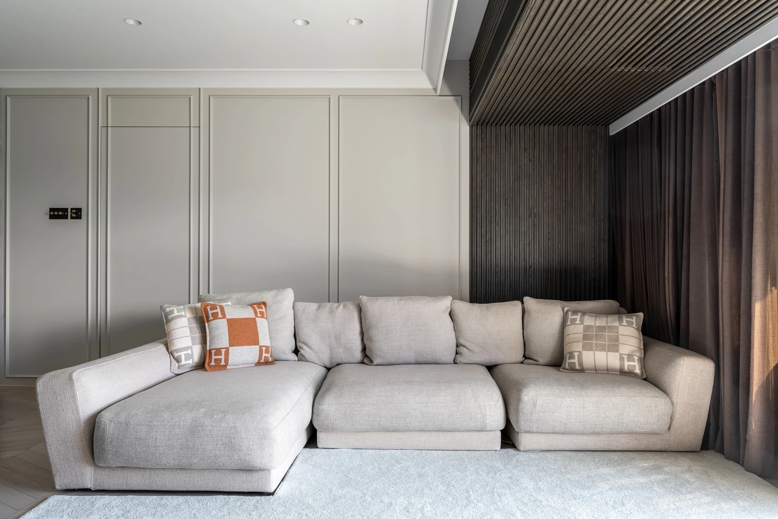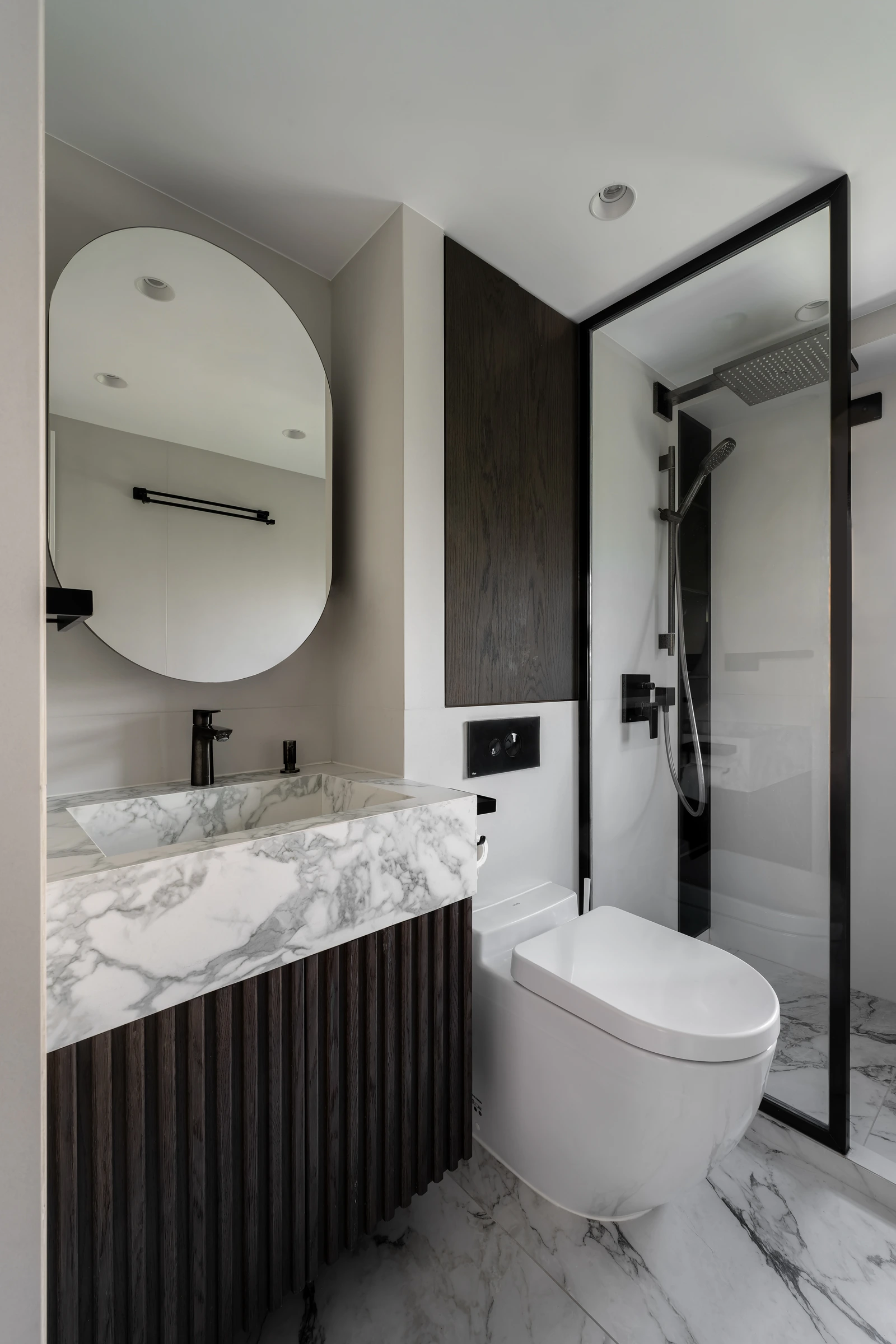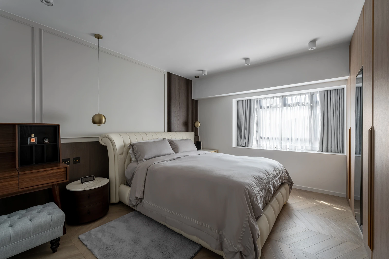 At Cavendish Height, we set out to translate the client’s desire for light, openness, and flexibility into a calm yet refined living environment. Abundant natural light defines the space, while a fluid layout avoids excessive built-ins, allowing the home to adapt naturally to everyday life. A palette of warm wood and soft cream tones is paired with delicately veined marble accents, creating a contemporary atmosphere that feels elegant, restrained, and quietly luxurious.
