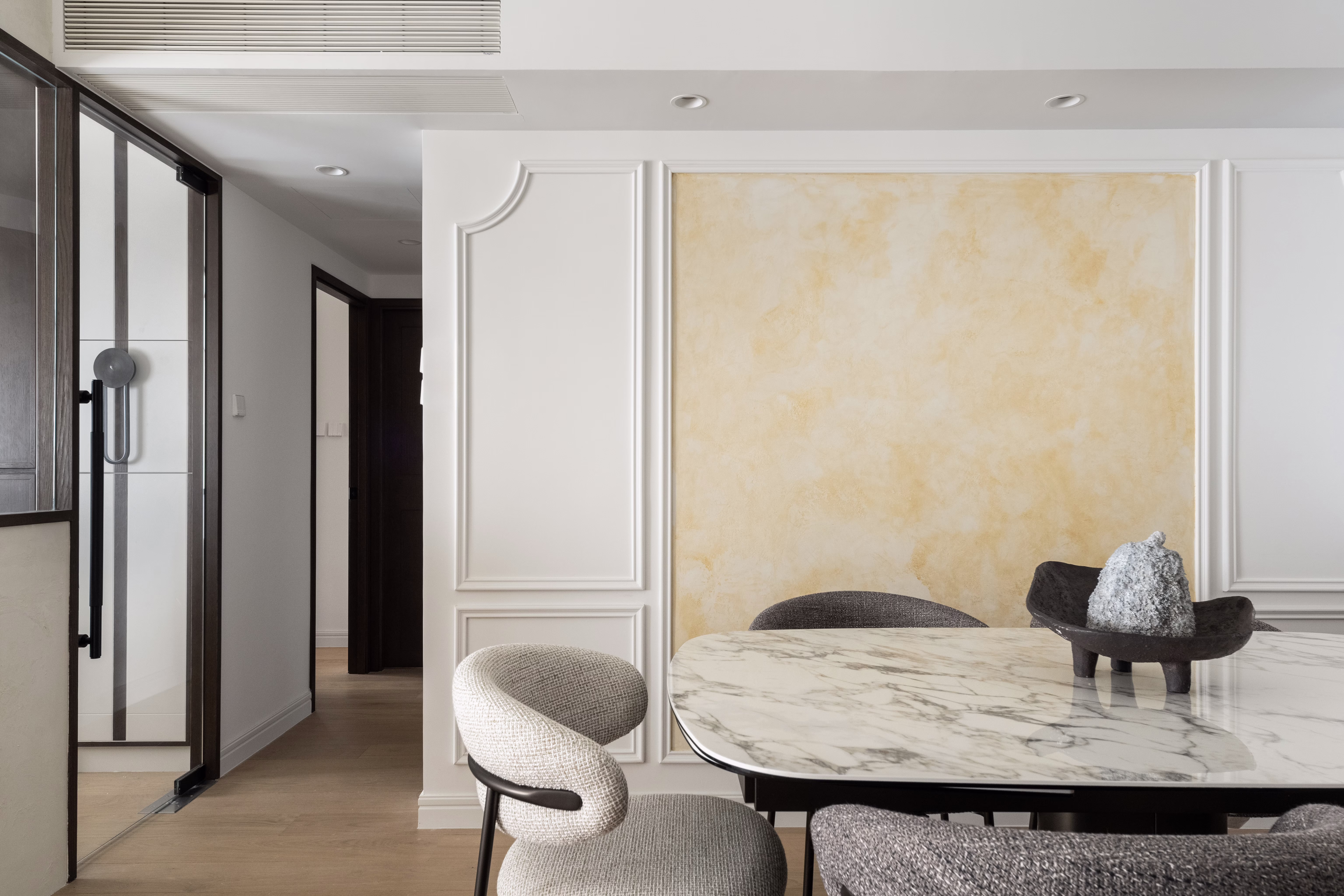 Located at Scenecliff in Hong Kong, this 1300 sq ft interior design project creates an elegant and accessible home for an elderly couple and their mother. Blending cultural heritage with modern functionality, the space features Southeast Asian elements, dark walnut accents, and gold details. A curved glass wall opens the living area, enhancing light and communication. The fully accessible washroom and adaptable bedroom ensure comfort and safety. This thoughtful design supports independence while celebrating tradition.